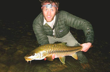 Traditionally Mahseer have been caught using either bait or lures fished with heavy-duty fishing tackle. It is fair to say that these methods have unquestionably accounted for the largest Mahseer. By contrast, fly-fishing for Mahseer is a relatively new concept and techniques are still very much developing. The team at Himalayan Outback who host our Indian trips have embraced this concept with complete belief and total commitment.
