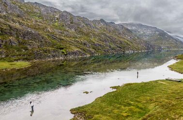 Greenland has the world’s lowest population density. Nuuk, the capiutal city only has a population of approx 20,000. For the most part it is a vast empty space consisting of mountains, glaciers, and copious quantities of rock!!! It is maybe hard to understand why it is called Greenland! Combine this with countless fjords with rivers full of fish it is an anglers Eldorado. Anadromous as well as resident Char inhabit the freshwaters along the coastline. Of course not all rivers are made equal. Benefitting from extensive local knowledge and research we have come across what we feel, at Two River Valley, to be a brace of the best rivers amidst exceptional surroundings.