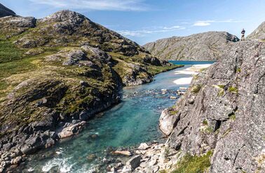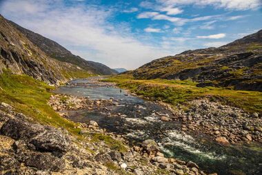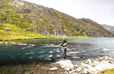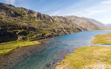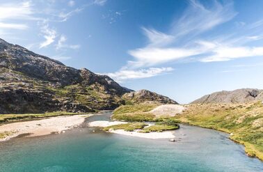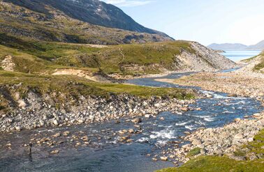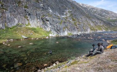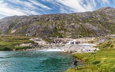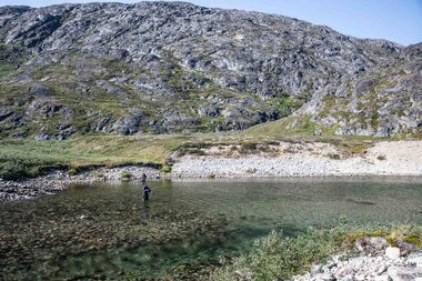 Both rivers offer you prime fly-fishing water with fast runs, pocket water, and all the structure that you want to see in a river. The river next to the lodge offers a combination of river sections and a smaller lake separating the river sections (most rivers in Greenland have their origins from a glacier lake in the mountains). In total you have around 5-6 km of good fishing water stretching from the river mouth all the way up to a waterfall which stops the char from venturing further up the system.
