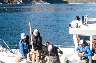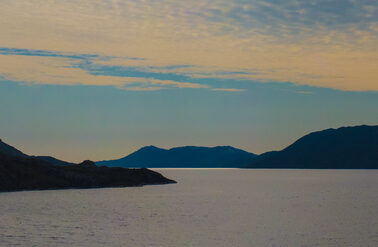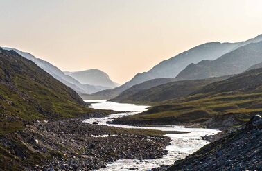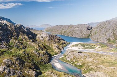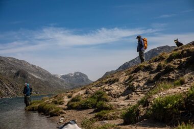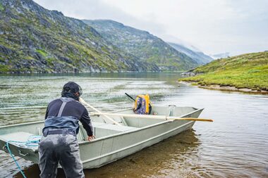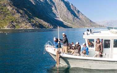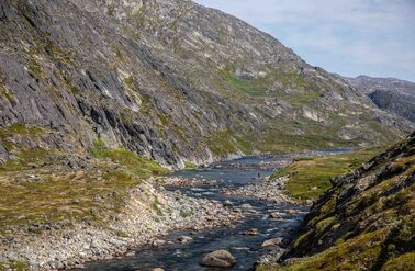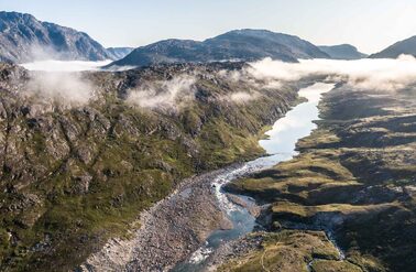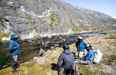 We operate in Greenland during the summer, which is the season of the midnight sun and an excellent time to experience the region by both land and water. During this time of year, you can observe whales swimming along the shoreline, icebergs calving off nearby glaciers, and local fauna growing at tremendous speed. Furthermore, the warm weather increases accessibility to hiking trails ascending into the backcountry and enables boat transit between communities along the coastline. During Greenland’s short summer, the climate is generally mild and the weather accommodating. The long days and increasing temperatures spark the reproduction cycles of sea-run Arctic char (Salvelinus alpinus), which begin their migration along the coastline, into the rivers and back to the place of their origin to spawn.