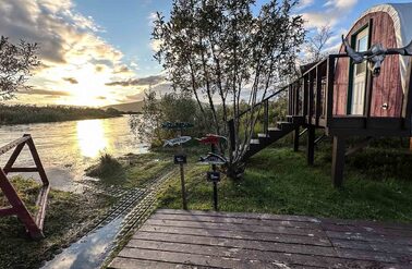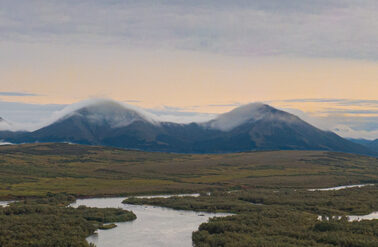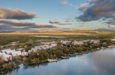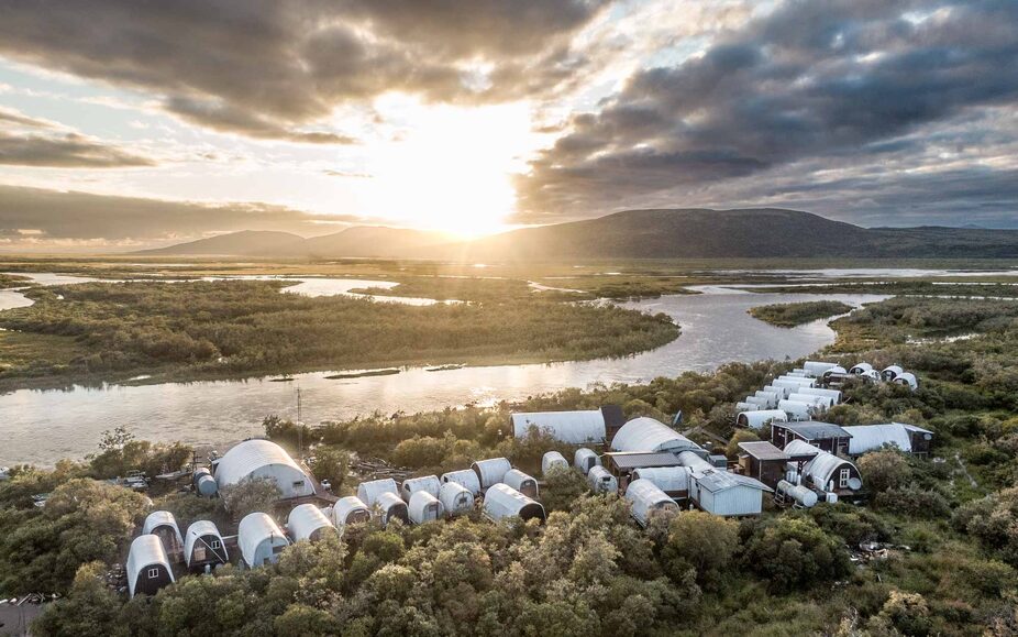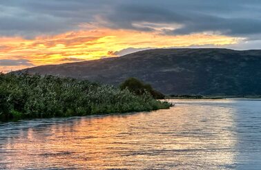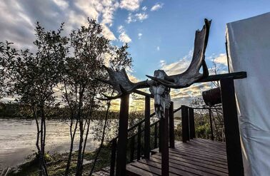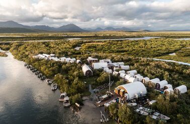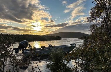 Goodnews River Camp at sunset
