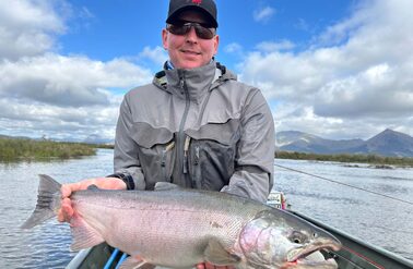 The takeaway from the above is that silvers are very very good sport on a fly-rod. I cannot really imagine a Silver week on the Goodnews when you would not return after a day’s fishing having had more than your share of action. Our week was the last of the season and we were facing a river that was not just high but was in a full-blown flood. To depart each day, come rain or shine, high or low water, with the total confidence that you are individually going to catch dozens of salmon is all part of the appeal. Nobody is pretending this is the same as fly-fishing for Atlantic Salmon, Sea Trout or Steelhead, but you are catching salmon, and they fight like any sea run migratory fish. If we were using lighter leaders and smaller flies, then other than the fact that the bulk of the fish caught did not have the benefit of the river current to assist them, my feelings is that in terms of the fight, you would struggle to differentiate one species from another. (I can already hear a chorus of protest with claims of ‘XXX fish, pound for pound is the hardest fighting fish’ but rarely can fish ever be compared like for like when fished in such different environments).