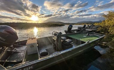 Travel up and down the river is via an assortment of jet boats, craft that are akin to a military landing craft with an outboard that uses a jet of water instead of a propellor, allowing them to travel, once up on step, in very shallow water. This is a long way from the sort of transport used by Scottish ghillies or the long canoes in the likes of the Gaspe! They are however an extremely effective and speedy way to get around, especially in a river that varies hugely in depth and form. Given that you may travel from a few hundred meters to 30+kms from the camp, mobility is key. As someone more used to private Atlantic Salmon beats, where the odd canoe or even a flotilla of canoes might be considered intrusive to the experience, the roar of a passing jetboat may give the feel that you would be unlikely to see a fish, let alone catch without resting the pool for a few days, especially compared to the likes of Iceland, with the rivers being as clear as they are, where stealth is essential.