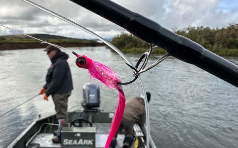 Although in low and warm conditions, Silver salmon will to an extent stay in the current in better oxygenated water, typically they will seek out the soft spots in the river, congregating in slews and channels off the main stem and river flow. Where Silver salmon differ from really any other salmon species, is that they absolutely love chasing a fly. If you can find where the fish are lying, you will hook them. Choice of fly is not complicated. Bright pink will work in almost any situation, although when the water is clear or the conditions sunny, other colours can certainly be used if the bite slows down. Purple and chartreuse would be secondary colour choices and if the fish are being unusually picky, then smaller flies can be effective. However, as a rule you do not need an over-flowing fly box with every colour and size imaginable, although experimentation is always fun.