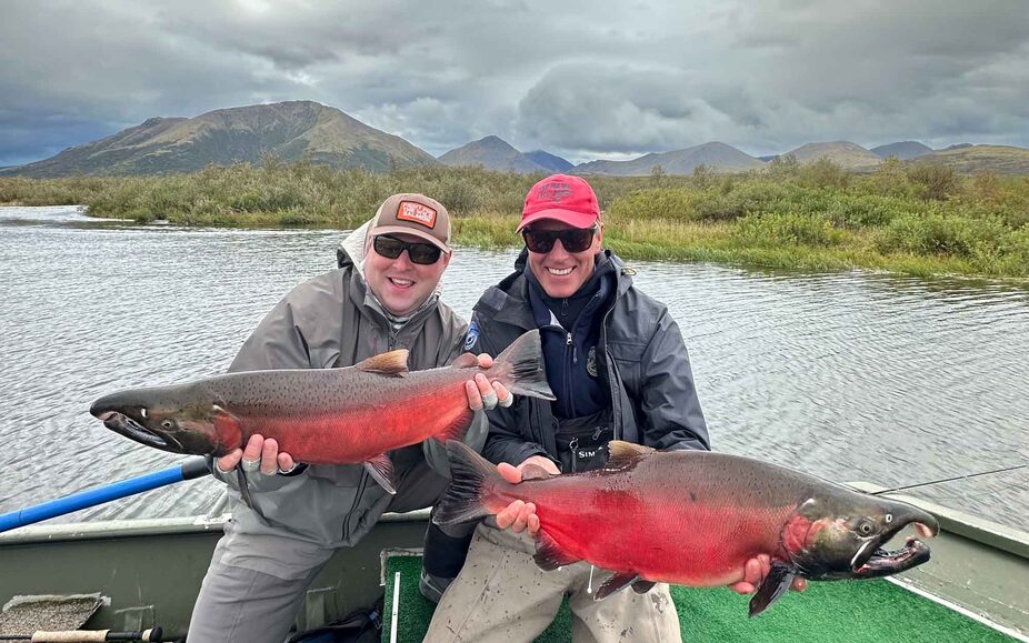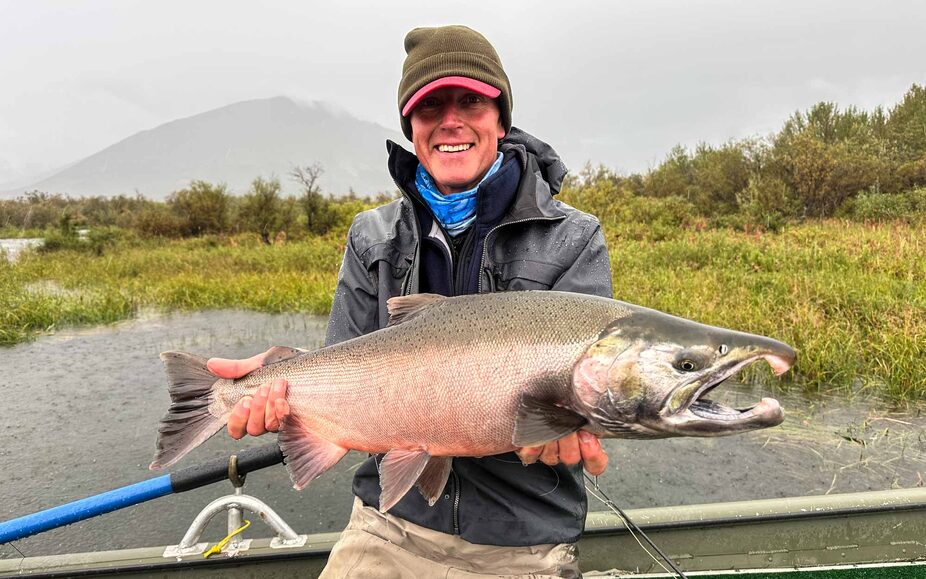 But just as things seemed to be slowing down, we hit another seam of fish and with a final double-hookup, we hit our 50, then 51 Silver salmon for the day. Being 51 years of age, this felt to me like an insanely memorable figure where we could proudly put our rods down, without any need to squeeze out another fish or two, for numbers sake, in the dying minutes of the day. Instead, we patted ourselves on the back for a great final day and with reasonable afternoon weather, fully enjoyed the scenic journey back to the lodge, ‘drifting’ round the tight river bends in our jetboat and quietly reflecting on what an incredible week we had had. It is worth noting that 50+ fish is a relatively easily achievable tally on the Goodnews during a peak Silver week, just one or two weeks earlier. One final remarkable aspect of our day was that all these fish came from just 3 pools and 2 of them, our guide Reed, who has many years under his belt guiding at Goodnews, had never even fished before.