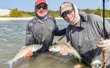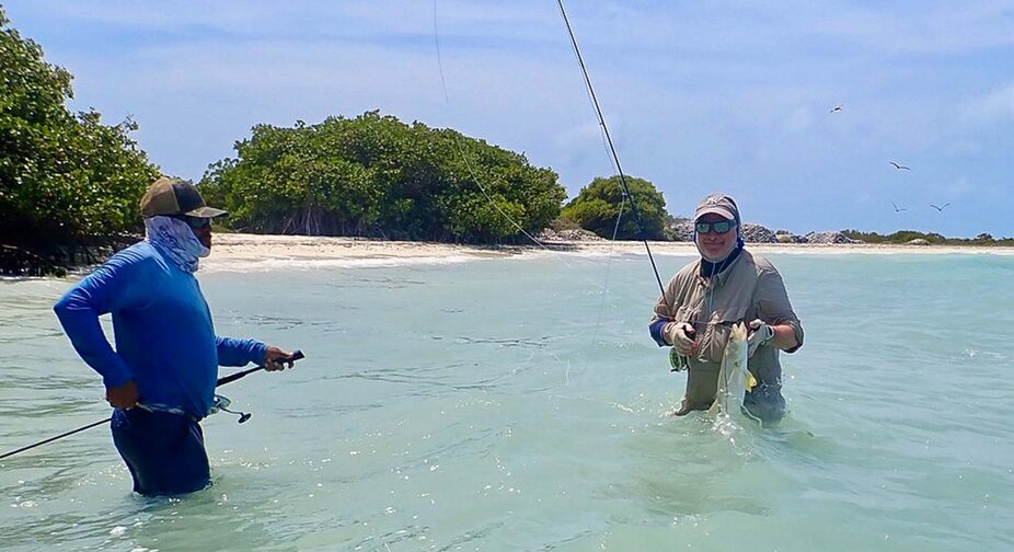 The fishing was good but seemed a little different pattern to previous years. For example, there seemed to be less bonefish on the flats. We visited a number of previously productive long flats that simply had no fish on whatsoever. Most bonefish we caught were from the resident schools that always live in the same place. Here it was possible to catch a number of fish whilst remaining stationary, rather than what I would prefer, catching sporadically as slowly progressing down the length of as flat. That said, there were definitely a surprising number of permit this time. In our two previous visits, we had encountered only I permit each. Oswar took us permit fishing on the morning of day 3 and we must have come across around 30, with at least 10 good shots each for Tom and I. Sadly there were no eats for any of this… we mainly used an Avalon fly, however, Oswar then produced a smaller and more unique keel fly he had recently been given by a client.. in fact he had been given two, one was used the previous week and immediately resulted in a permit capture and the fly went off as a memento. I was on the rod with the new fly, and yep, almost immediately resulted in a take.. The permit kited left and skiting the pancake flat got tangled round a rather large turtle that had been minding its own business. We managed to shake the fly line free, then the permit took off across the flat at high speed nearly emptying the spool. Jesus tried to get the boat going and I was just putting some line back on the reel when the leader went as the fish dived off the end of the flat into deeper water! Oh well! Surprisingly, we came across permit on a number of other occasions, including on bonefish flats (where there were no bonefish).. but without the magic fly, none were to eat.
