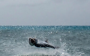 Nothing else was quite as spectacular but we continually added more bonefish and some very nice bar Jacks as well as numerous other species.. 18 different species in total. I also hooked and lost a large parrot fish on the 8wt. We also had a morning when we headed out looking for Tuna, which was a bit hairy on the high seas and completely futile, with only a dolphin sighting to show for it. We spent the last day mainly fishing for Tarpon. Despite numerous hook ups, we couldn’t get any to stick and all too soon, that was that. I had some fun in the early mornings catching quite a few bonefish and other species from the dock by the airport, but not much further to report.
