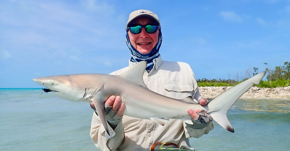 The previous day we had a session for tarpon and snook which was eventful. From the boat I managed to catch a modest one and Tom had a few on but just wouldn’t stick. Then when wading Tom caught a snook, followed by a couple more. I had only managed a bonefish but couldn’t buy a take from a snook.. this was the scene of my 7-0 to the snook in our first visit, so I was getting increasingly desperate. I finally got a take from what I thought was a good snook…turned out to be a small black tip shark…a first for me on the fly! A bit latter Oswar said come on, “lets go bonefishing” and was walking away, when my last cast went tight, finally I had a nice snook! We then carried on a bit longer to no avail… Oswar.. “come on lets go bonefishing”.. so I start winding in and BAM, a large head comes out of the water and engulfs my fly.. first thought very large snook, but soon revealed as a large tarpon exiting the water in a spectacular leap. Some time later, Oswar is able to grab the mouth of a ~50lb fish! Result!